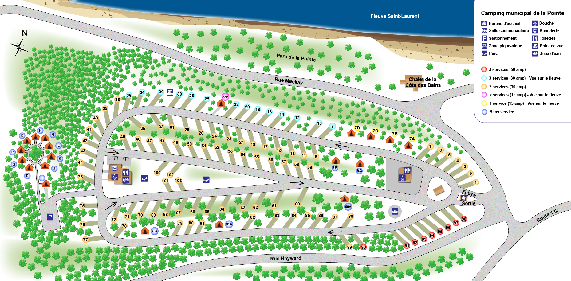To make it easier to get around and fully enjoy your stay, the map of the Camping municipal de La Pointe helps you quickly locate campsites, services, and facilities on the grounds.